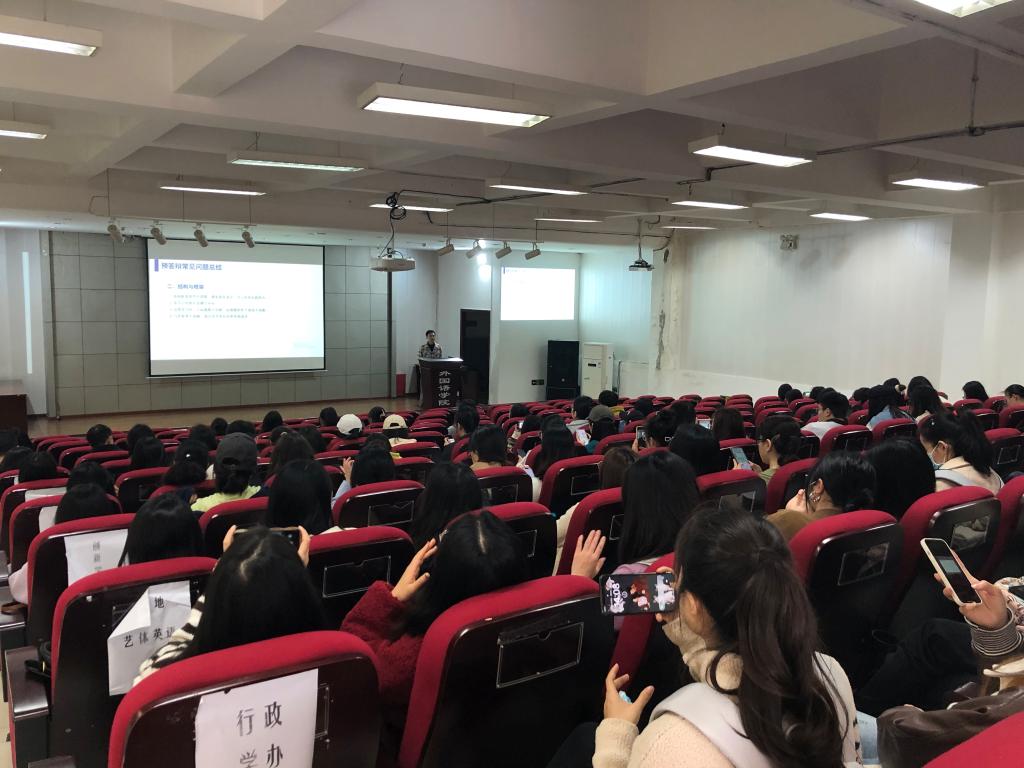外国语学院研究生教务办公室隋海兵老师主持本次会议。会上,隋老师介绍了预答辩通过情况,并对预答辩普遍性问题做了总结,强调学位论文规范性的内涵与重要性。隋老师对学位论文评阅管理办法要点进行讲解,着重介绍了不同评阅意见及处理办法,以及学生申诉的基本条件及流程。会议最后隋老师介绍了毕业工作的关键环节及时间截点,要求各位同学在按照各个时间截点安排论文修改及材料提交工作。会后大家积极踊跃向隋老师提问,隋老师耐心解答了同学们的问题。