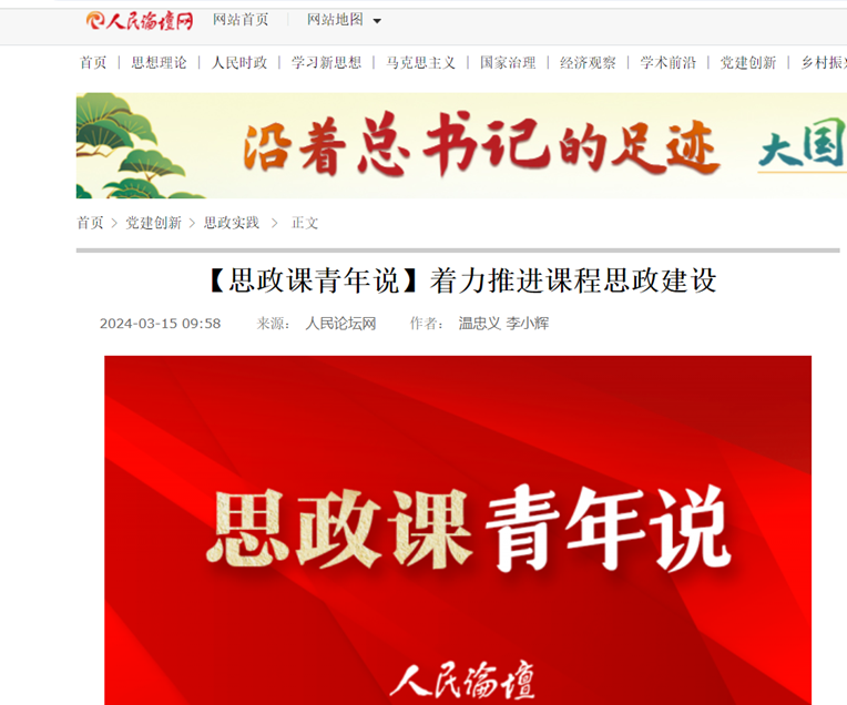 2024年3月15日,《人民论坛网》报道了重庆大学外国语学院课程思政理念及实践:着力推进课程思政建设(文章网址:http://www.rmlt.com.cn/2024/0315/697679.shtml)。