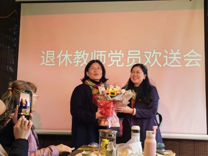 随后,全体党员为退休党员卢桂华老师举行了隆重而温馨的欢送会。学院领导、支部书记、院系同事等纷纷回忆起与卢老师共事的往昔,肯定了卢老师为学院做出的贡献,送上了对卢老师的美好祝福。卢老师也发表感想,总结了自己的教师生涯,对学院和同事的祝福表示衷心感谢。