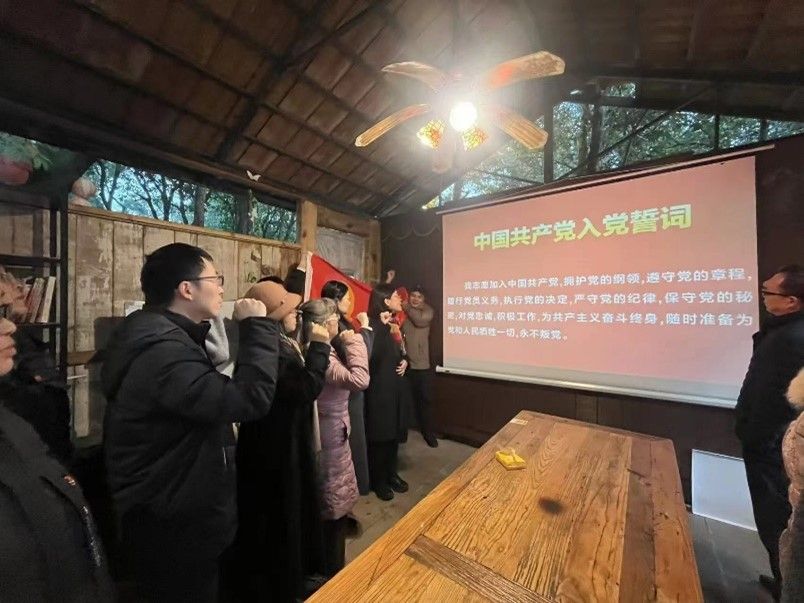 最后,由卢老师领誓,全体党员面向党旗,重温了入党誓词。主题党日活动取得圆满成功。