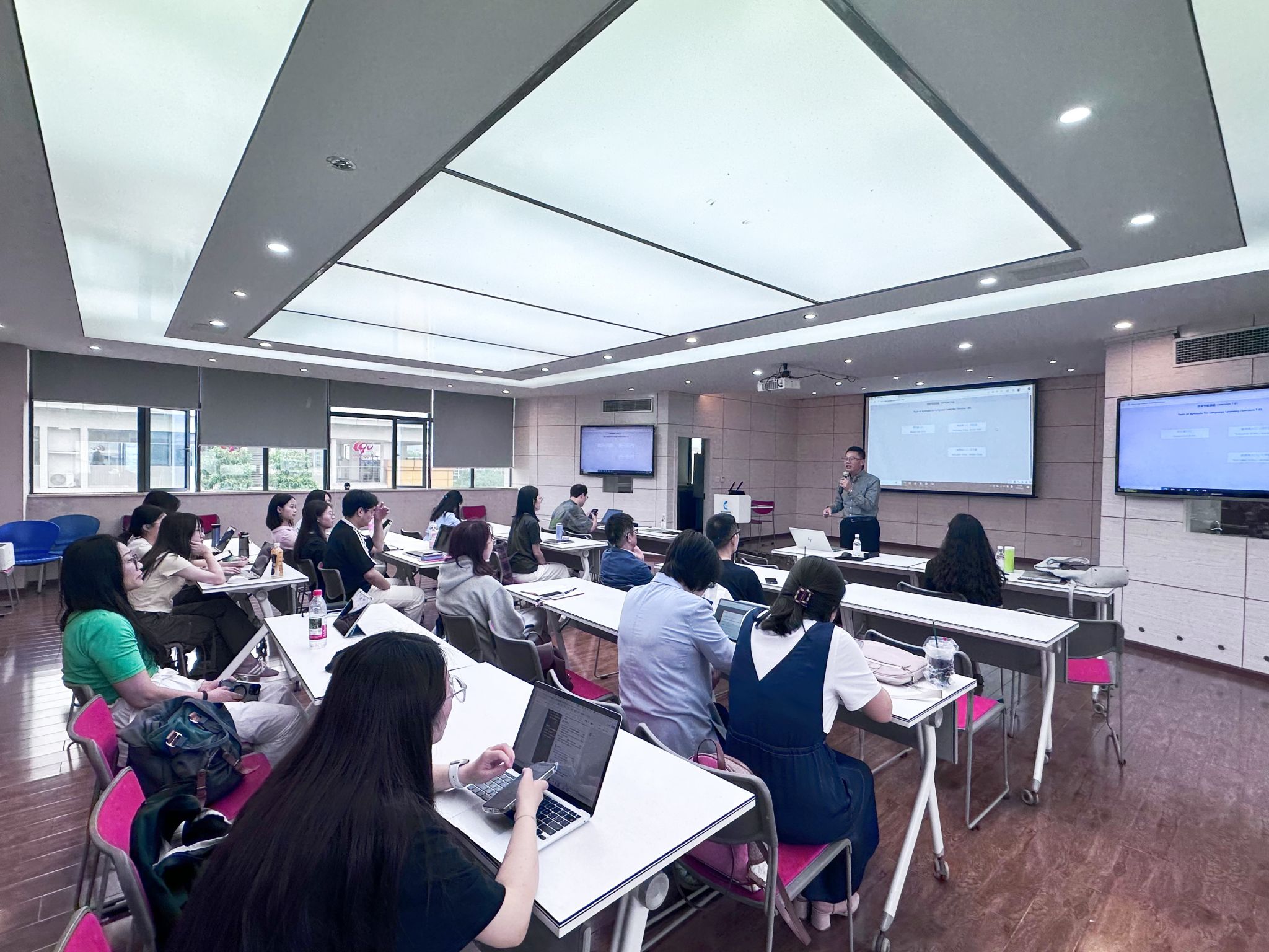 盘峻岚博士首先为大家系统介绍了其团队研发的TALL(Tests of Aptitude for Language Learning)工具。该工具通过科学的测量维度评估语言学习潜力,其研发过程融合了认知心理学与二语习得前沿理论。盘博士从工具研发背景、技术路线、效度验证数据三个层面展开论述,特别强调了该工具对教学实践评估和学术复制研究的双重价值。随后,香港理工大学李少锋教授作为特邀与谈嘉宾进行学术点评。李教授从二语习得个体差异研究范式出发,从理论构念、研究设计等方面充分肯定了TALL工具的方法学创新,并就生成式AI时代语言学能测试的发展路径提出前瞻性建议,如学能工具TALL的进一步验证可将年龄、语种、实验设计、文化敏感度、任务型教学法纳入考量。