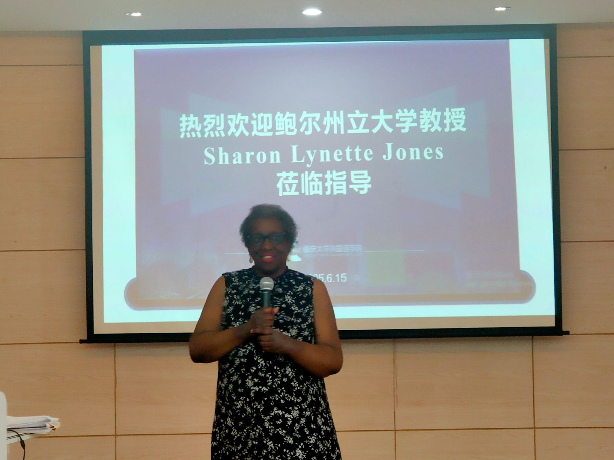 2025年6月15日上午,由重庆大学外国语学院承办的“2025年族裔文学国际研讨会”成功闭幕。当日下午,美国鲍尔州立大学(Ball State University)女性、性别与非裔美国研究中心主任莎伦·莱尼特·琼斯(Sharon Lynette Jones)教授应邀在外国语学院楼501会议室作了题为 “创造多样经验:佐拉·尼尔·赫斯顿笔下自然的动态性”(Creating a Range of Experiences: The Dynamism of Nature in Zora Neale Hurston’s Writing) 的学术讲座。讲座由英语系奚茜博士主持,李玲教授、范嘉成博士和孙玉晴博士出席,英语系同学到场聆听。