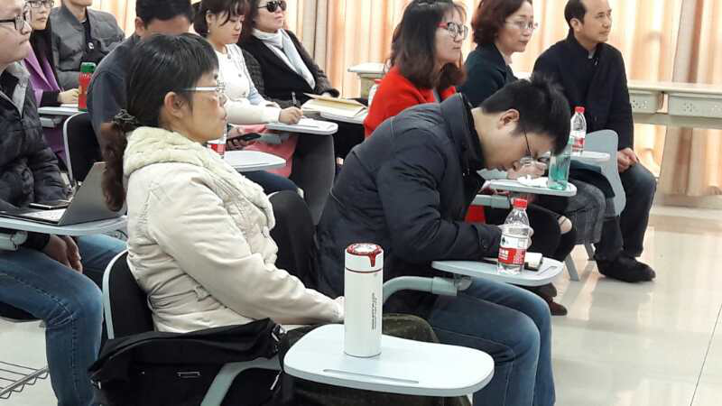 培训分为理论知识和实验演示两个环节。在理论知识环节,瀚翔生物医疗电子股份有限公司技术支持部经理李永奎工程师为大家详细地讲解了事件相关电位技术的定义及原理、波形识别与测量方法、常见实验范式、数据处理和分析方法、以及常见的语言加工脑电成分,并通过几个视频介绍了脑电技术的应用实例,极大地激发了广大师生的研究兴趣。在场师生积极提问,就波形提取、成分识别、实验试次、有效滤波、初学者如何入门等问题进行了热烈讨论。