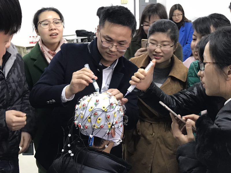准备工作完成后,大家分批次进入实验室学习数据采集与分析。李工程师讲解了数据采集过程中的注意事项,对采集到的原始数据进行了滤波、迭加平均、转换、统计分析和理论阐释。在场师生认真聆听讲解,积极提问。实验结束后,李工程师演示了电极帽的清理方法,交代了脑电设备的日常保养和维护方法。