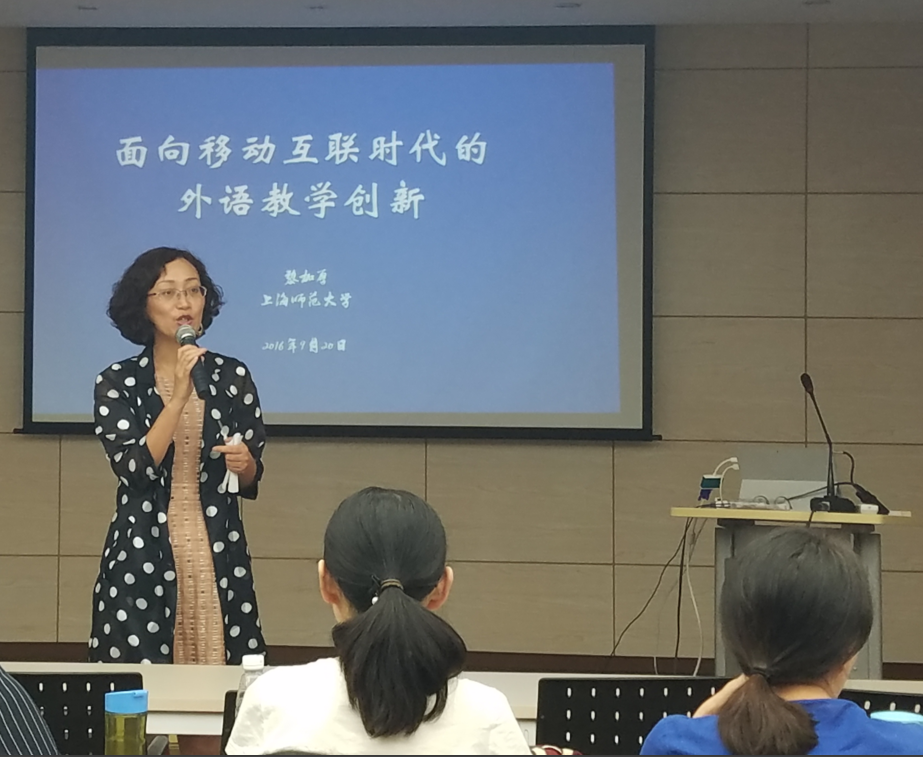近年来,为推进教育技术与教学的深度融合,重庆大学加大了对教师教育技术素养提升的力度。在此背景下,外国语学院也积极开展各种“互联网+”的教师培训,以期推进大学外语教学的改革,提升教学质量,推动学校的国际化进程。2016年9月22日下午,外国语学院邀请了上海师范大学数理信息学院教育技术系主任黎加厚教授为我院师生举行了一场“面向移动互联时代的外语教学创新”专题讲座。本次讲座由外国语学院欧玲书记主持。