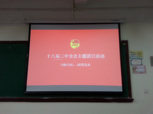 2013年12月5日下午2点由外国语学院13级日语01班和日语02班联合举办的以中国共产党十八届三中全会精神为主题的团日活动如期举行。