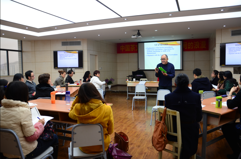 Pedro从good teaching, good teacher, lesson and lesson plan等概念入手引导参会教师就自己的日常教学进行反思、讨论并陈述自己的观点,在互动中使老师清楚在制定教学计划时应该了解的一些基本概念以及在日常教学计划中的误区,重视在制定教学计划时考虑教学目标,明确如何给学生提供足够的输入和示范,如何指导学生进行练习,如何避免教学任务计划设计时过多或过少。研讨会后Pedro给老师们提供了lesson planning的相关理论文章的阅读。参加研讨会的老师也提出了自己在教学中的一些困惑,希望更多有不同针对性主题的研讨会来提高老师们的教学质量。