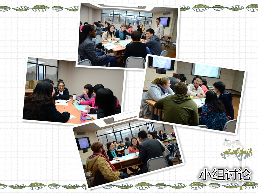研讨最后的重点转移到了中外教师的实际课堂教学。每个小组讨论之后罗列出在教学活动组织过程中遇见的问题与解决方法,各小组陈述自己观点和看法,其他小组教师则可自由提问。虽然问题很多,但大家分享经验,共同出谋划策尽可能地多渠道解决课堂教学中遇到的种种困难,每个小组陈述之后都会引发新一轮更深层次的思考和讨论。