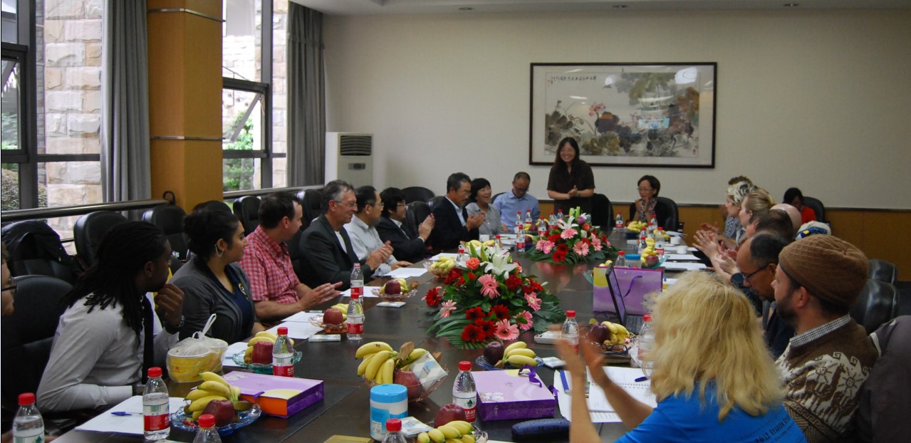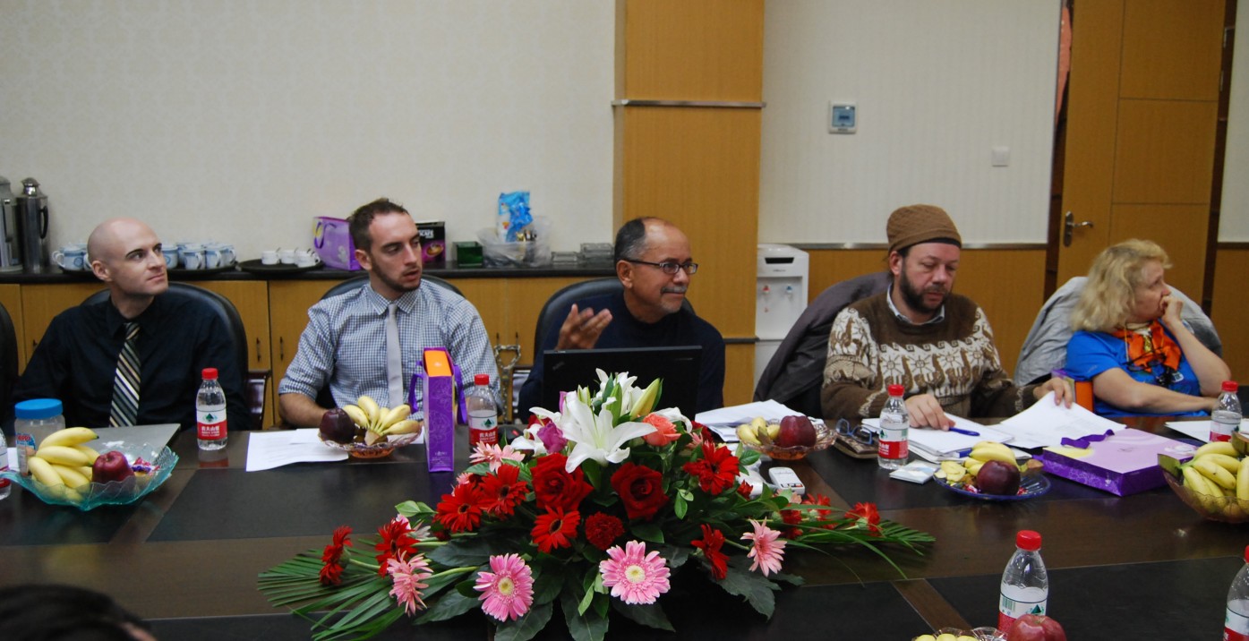 2013年9月11日,外国语学院隆重召开了新学年外教欢迎会。外国语学院党委书记余渭深、院长李红、副院长欧玲、董平荣,学院大学英语、教务、外事等方面的管理人员以及已经到岗的全体20名外教参加了本次欢迎会。