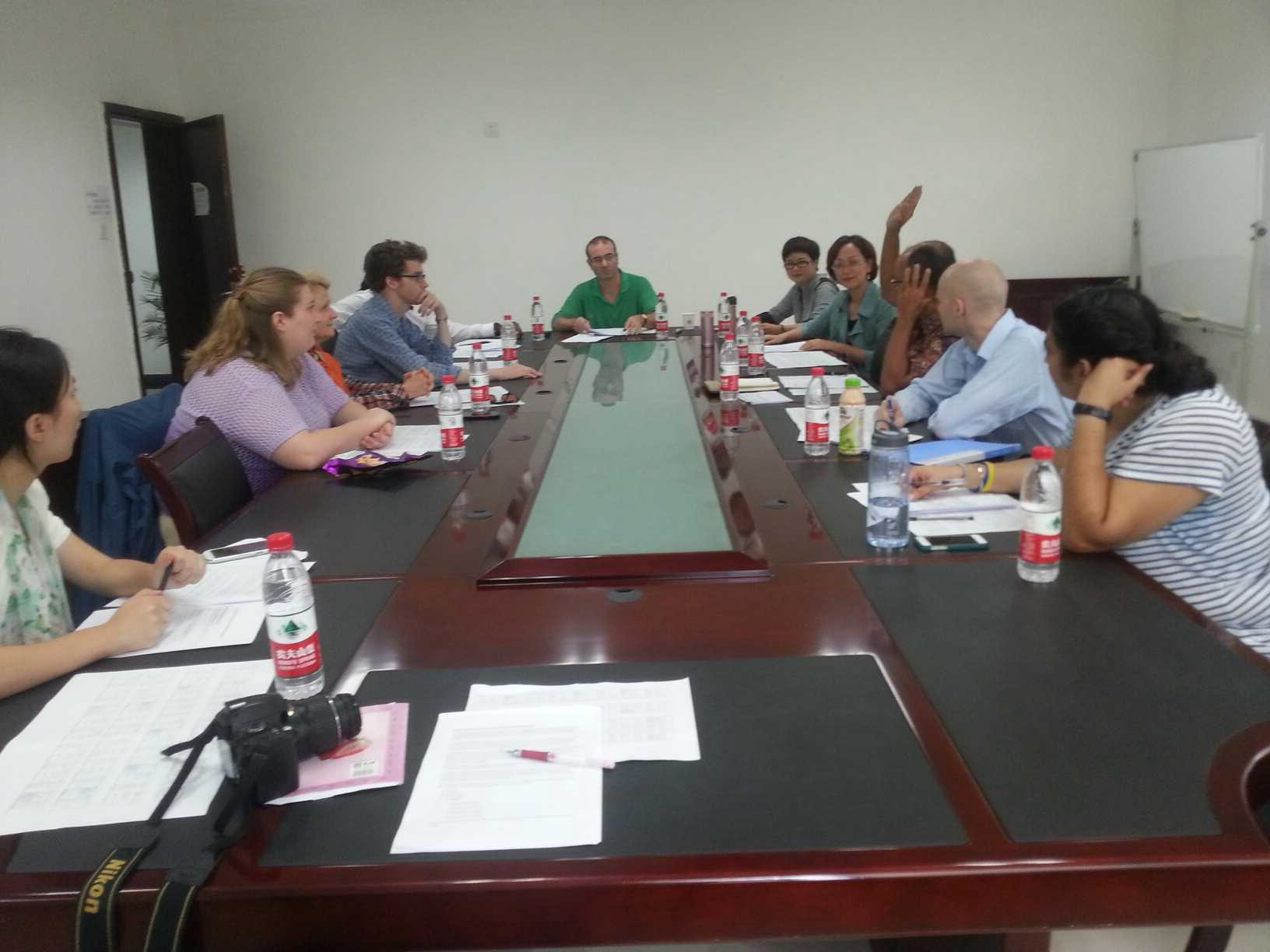 此次培训项目课程的参照欧盟语言框架,按照国际规范设计了课程方案。该培训课程共计96学时,分为课堂教学与实践以及课外活动三部分。四门主课程为:学术英语听说;学术阅读和学术文献分析;学术写作;词汇发展与笔记技能,分别由四位外籍主讲教师Pedro, Frank, Mila, Ernest,承担。同时结合四门课程的听说读写技能四位教师Arlo, Thomas, Rachel, Gursharan组织和指导学生就某个特定话题在课堂进行主题讨论,还有三名外籍教师负责组织学生的课外语言文化交流实践活动。学院对课程的设计和目标提出了具体要求,也介绍了重庆大学学生的基本情况。中外教师就课程的具体方案和教学计划进行了详细的讨论。此外,本次会议还就学生培训前的水平测试,以及培训后的效果评估,以及随堂观察等事项进行了讨论。