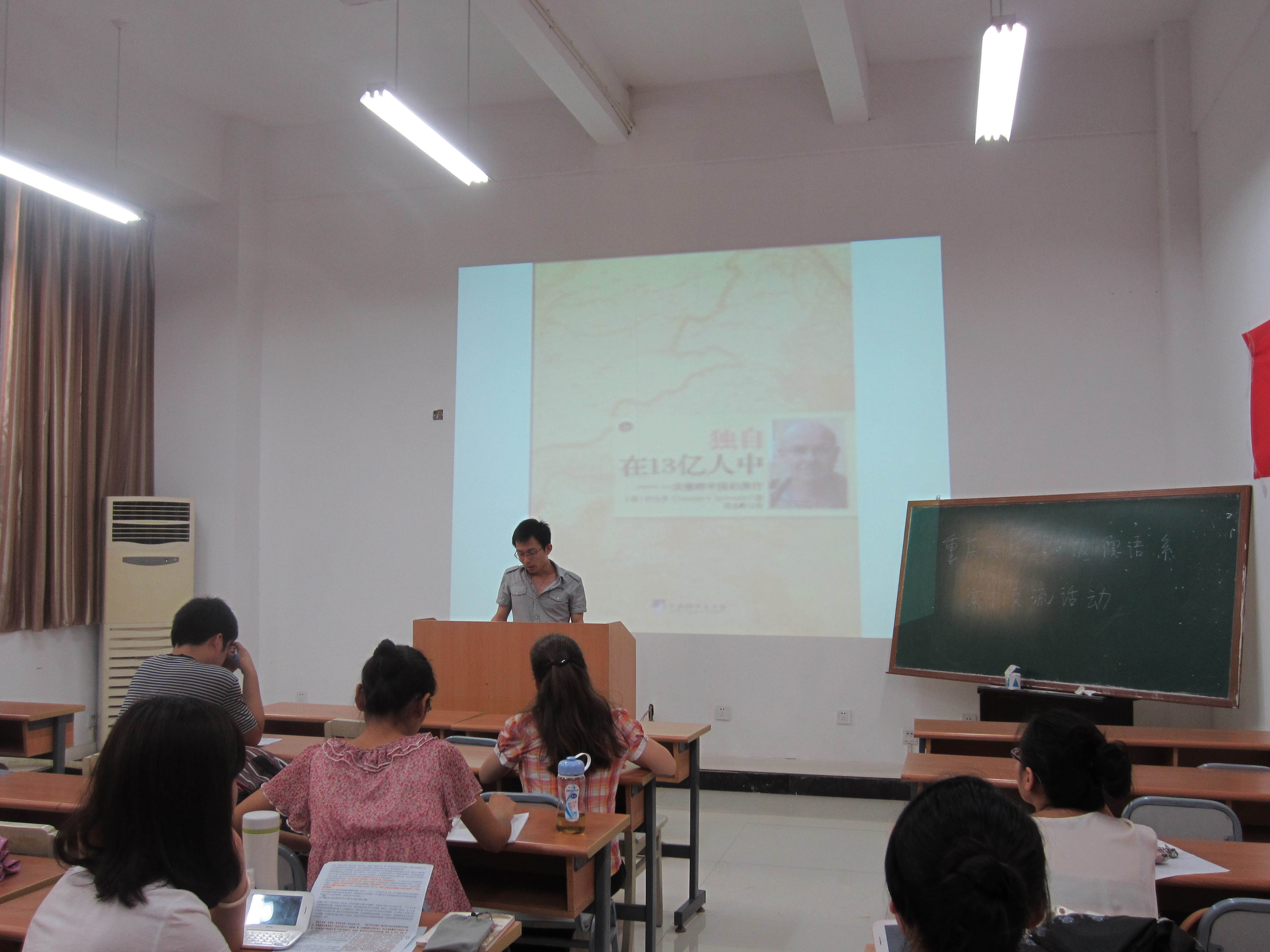 6月17日上午9点,德语专业全体同学在外国语学院学院楼105活动室开展了一年一度的读书交流活动。参加本次活动的还有德语专业2010级班主任黄俊老师及任课外教弗西卡老师。