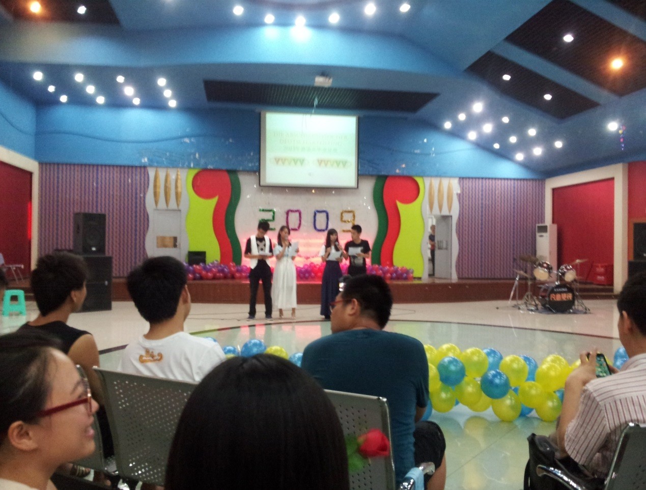 外国语学院德语专业2013届毕业生的毕业晚会于6月8日晚7时在一食堂三楼联谊厅举行。莅临毕业晚会现场的嘉宾有外国语学院董平荣副院长,何建华副书记,德法系薛松系主任,毛亚斌老师,黄俊老师,郭萌老师,邓俊超老师,耿晓云老师以及外教弗西卡老师。