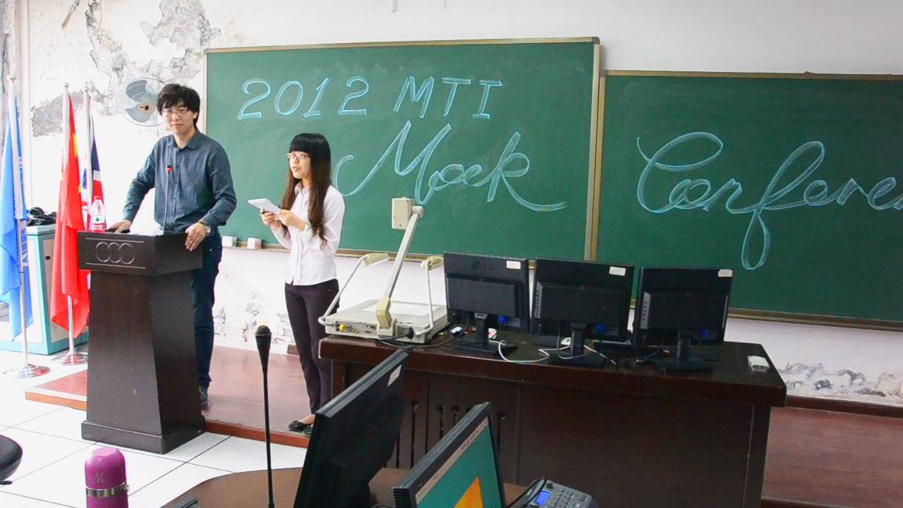 为了开拓国际视野,锻炼英语口语表达及写作能力,结识更多同道中人,学习如何与团队交流和合作,重庆大学外国语学院2012级MTI硕士班于5月7日成功举办了模拟会议(Mock Conference)。此次模拟会议邀请到了三位特殊来宾共同参与。他们分别是来自金科地产集团的罗云鹏先生、来自新西兰的Cassandra女士、以及2012级汉硕的袁晓颖同学,三位都作出了精彩的演说。