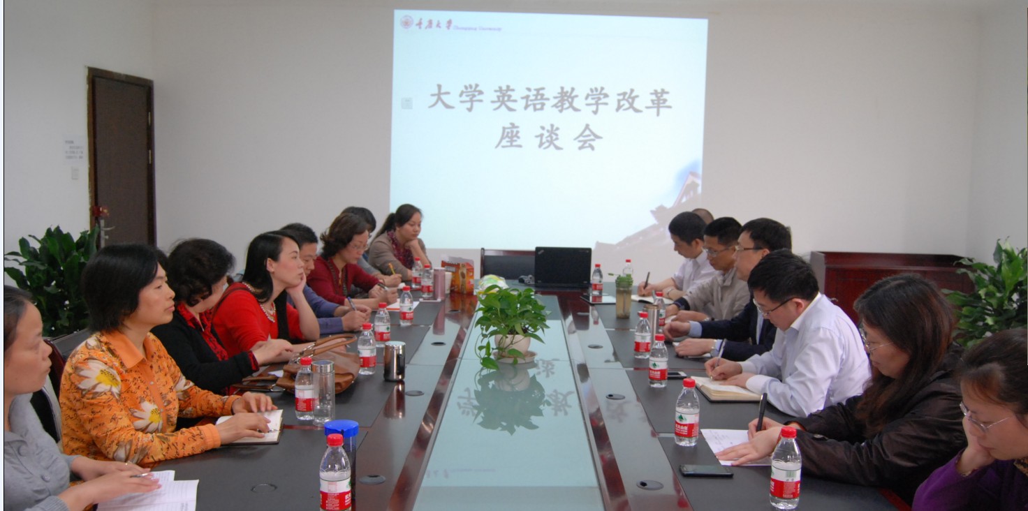 2013年4月3日,重庆大学杨丹副校长、教务处易树平处长、付红桥副处长、汪红梅老师莅临外国语学院,召开了大学英语教学改革座谈会。外国语学院党政领导班子、教授、大学英语各单位负责人以及教师代表参加了座谈会。