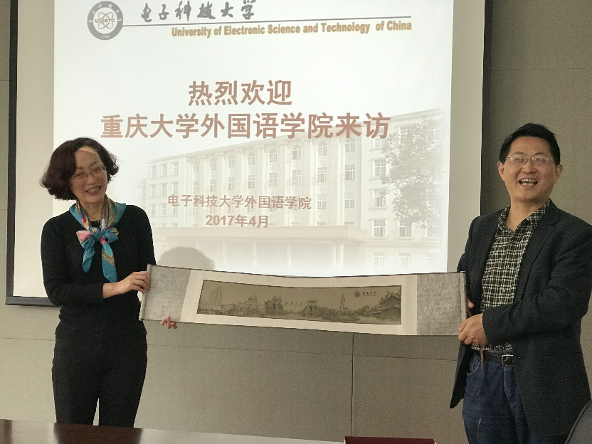 2017年4月17日,外国语学院党委书记,大学外语教育中心主任欧玲老师,党委副书记何建华老师,副院长李小辉老师,以及大学外语教学中心相关负责人、大学英语各课程组负责人、学院教学管理人员和学工部管理人员赴电子科技大学外国语学院就学院人事、学生工作以及大学外语教育等方面展开了深入的调研。电子科大外国语学院冯文坤院长、武好明书记,胡杰辉副院长、文学副书记以及其他相关部门负责人接待了我院教师代表团,并详细分享了电子科大在外语教育、课程建设与创新、师资队伍建设、人才培养等方面所做的努力和取得的成绩。