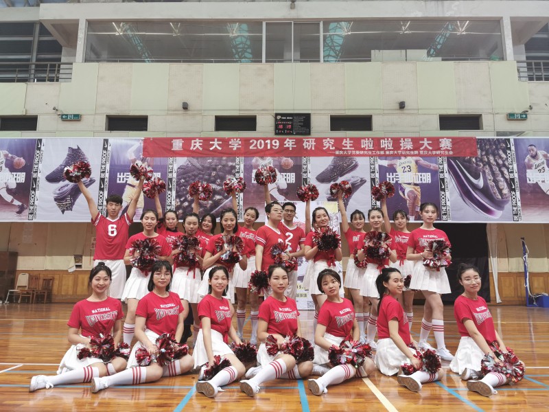 为丰富校园文化,展现重大活力,庆祝重庆大学90华诞,2019年11月11日下午,重庆大学2019年研究生啦啦操大赛在A区体育馆顺利进行。我院研究生代表队的22名队员,以昂扬的斗志、饱满的热情、坚韧的毅力,全身心的投入到比赛中,并取得了全校二等奖的好成绩。