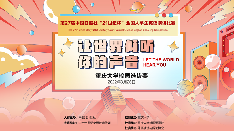 2022年3月26日,第27届中国日报社“21世纪杯”全国大学生英语演讲比赛重庆大学校选赛在腾讯会议线上平台如期举行。