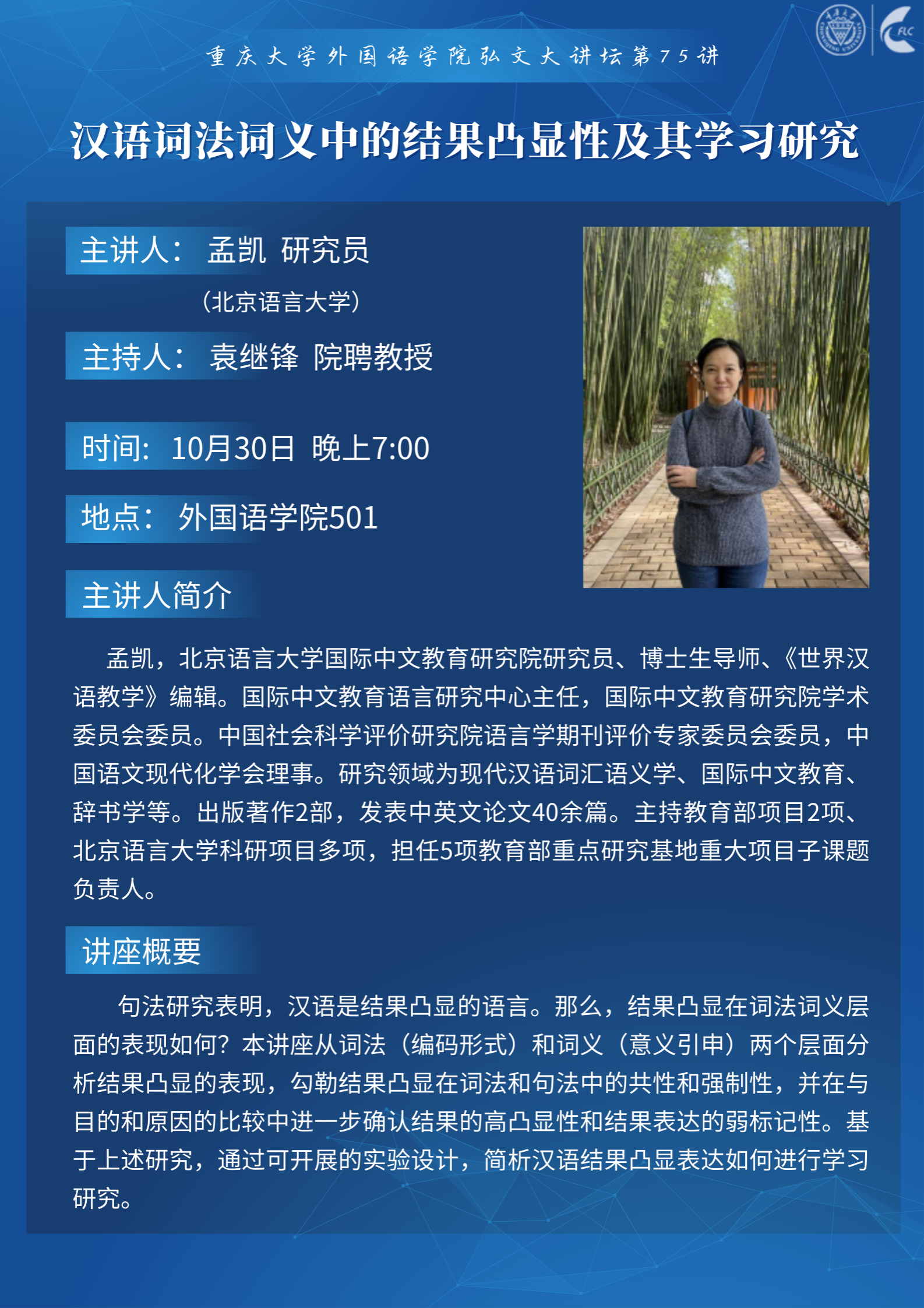 讲座|汉语词法词义中的结果凸显性及其学习研究