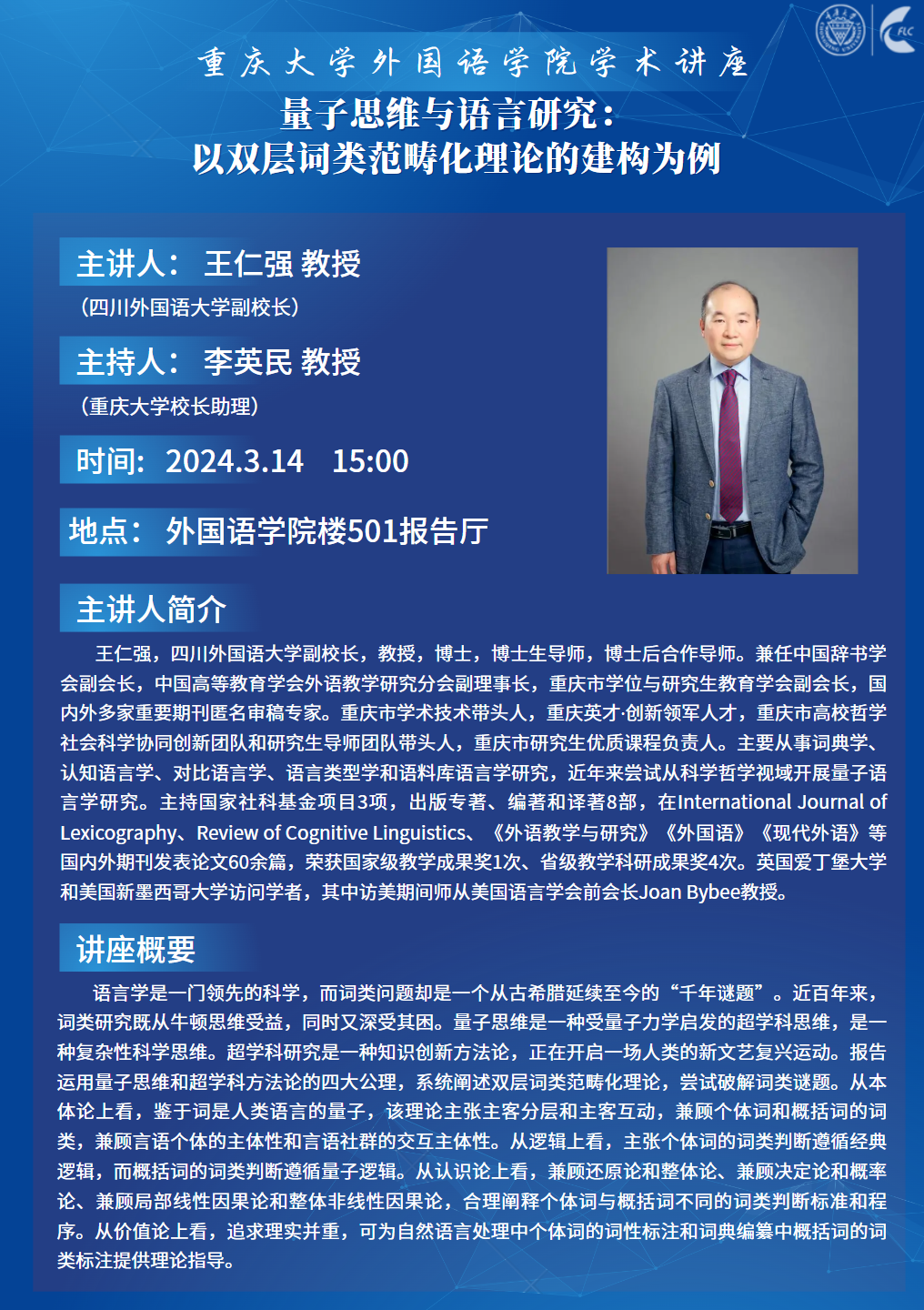 讲座|量子思维与语言研究:以双层词类范畴化理论的建构为例