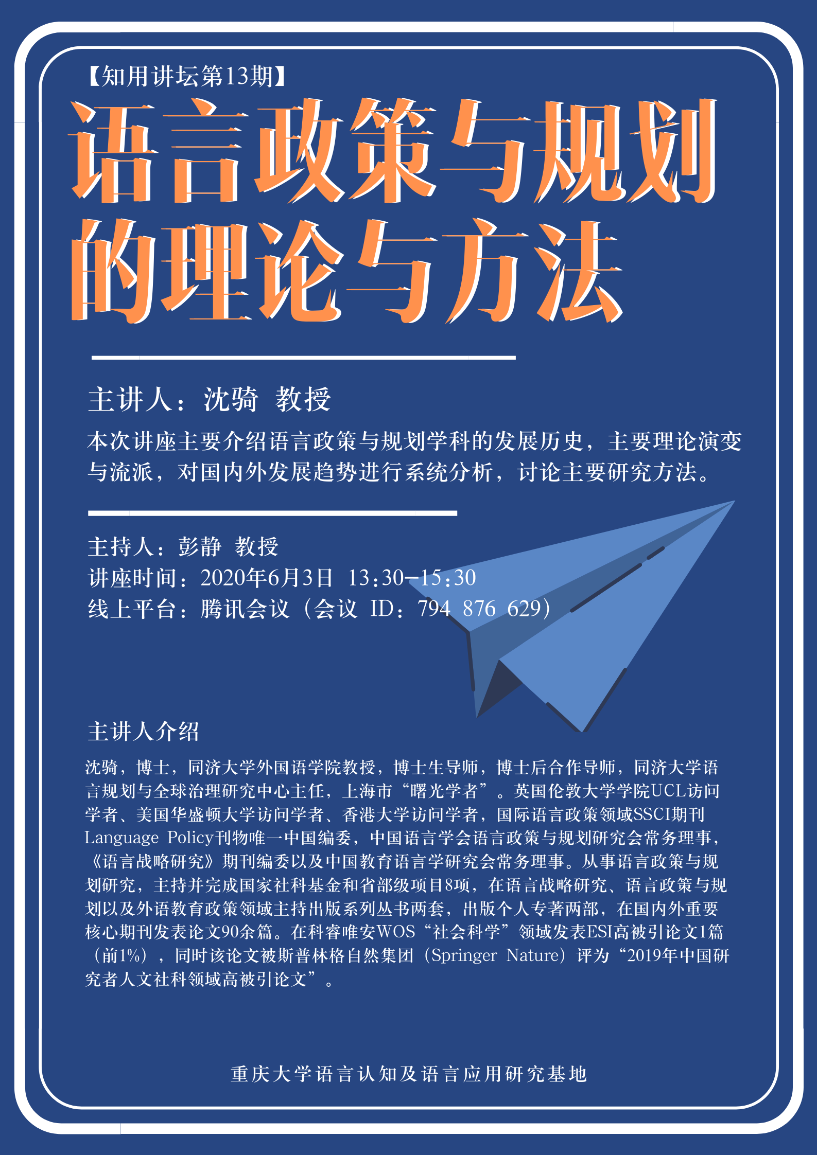 线上平台:腾讯会议(会议ID:794 876 629)