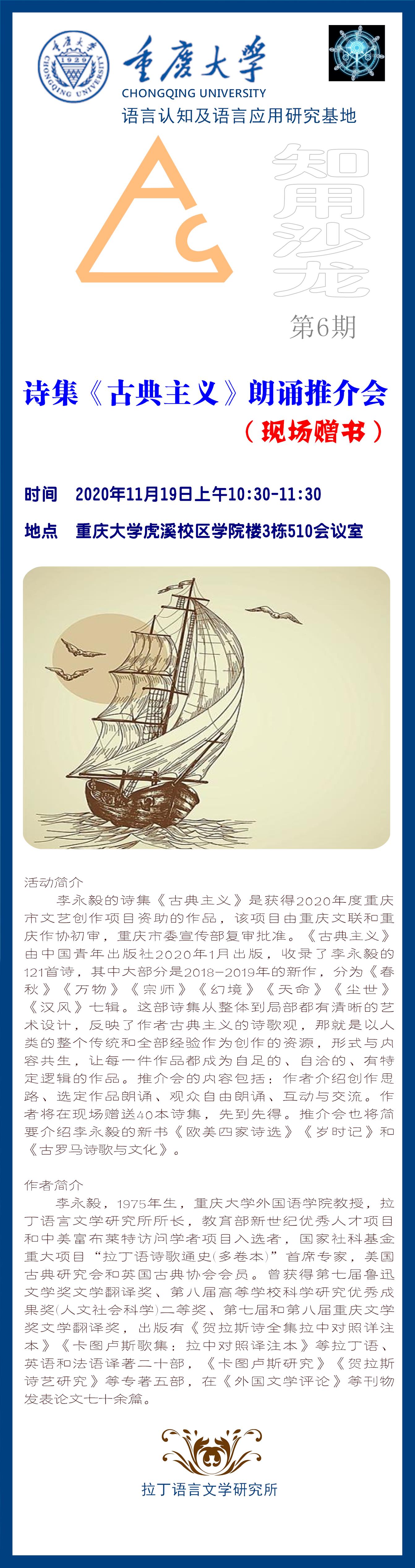 重庆大学语言认知及语言应用研究基地“知用沙龙”(第6期)暨诗集《古典主义》朗诵推介会(现场赠书)