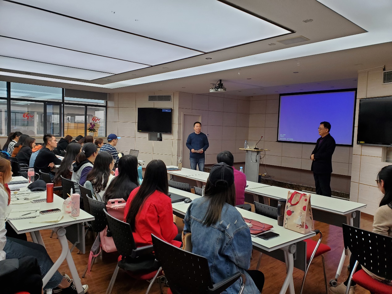 最后,在提问互动环节,余泽梅老师就翻译的选题专业面狭窄,应当如何选题进行了提问。针对该提问,张旭教授通过分享自己所带的学生情况,进行了详尽回复,并给出选题应考虑跨学科研究的建议。范定洪副院长再次代表学院对张旭教授的分享表示感谢,讲座在热烈的掌声中圆满结束。