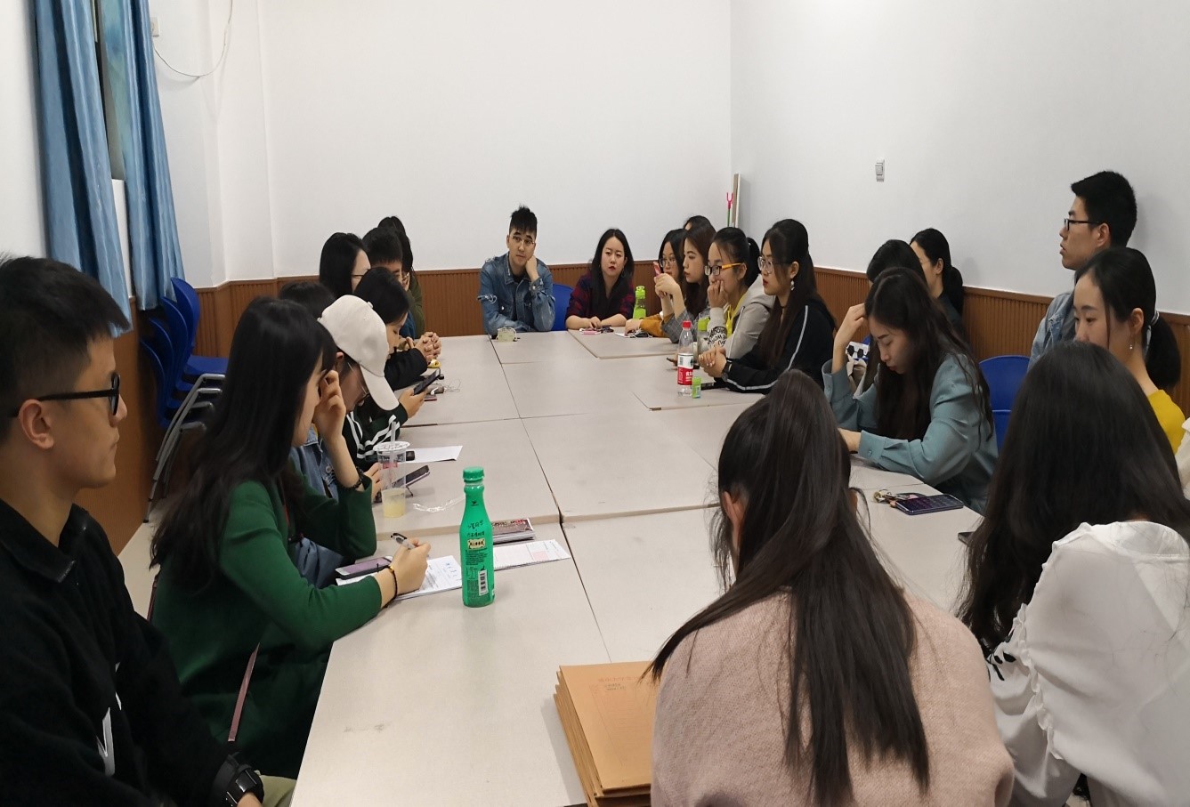 2019年4月11日下午1点,重庆大学外国语学院本科生党支部在外国语学院楼102会议室开展了组织生活,党员同志分享了“学习强国”学习心得与感悟。本次会议由党支部副书记李美清同志主持,党支部书记张茹同志和党小组组长蒋方圆同志参与会议讨论。