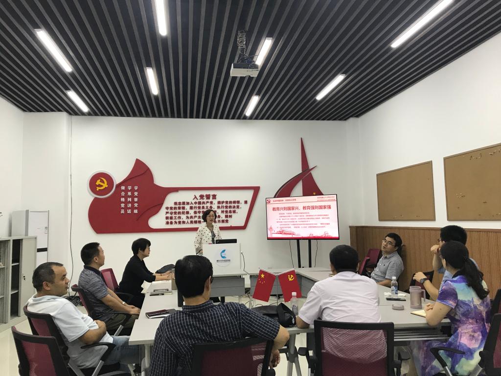 2018年9月20日下午,外国语学院党委在学院105党员活动室开展了中心组学习,专题学习了习近平总书记在全国教育大会上的重要讲话精神。会议由党委书记欧玲主持,院领导班子、党委委员、纪委书记、纪委委员参加了学习。