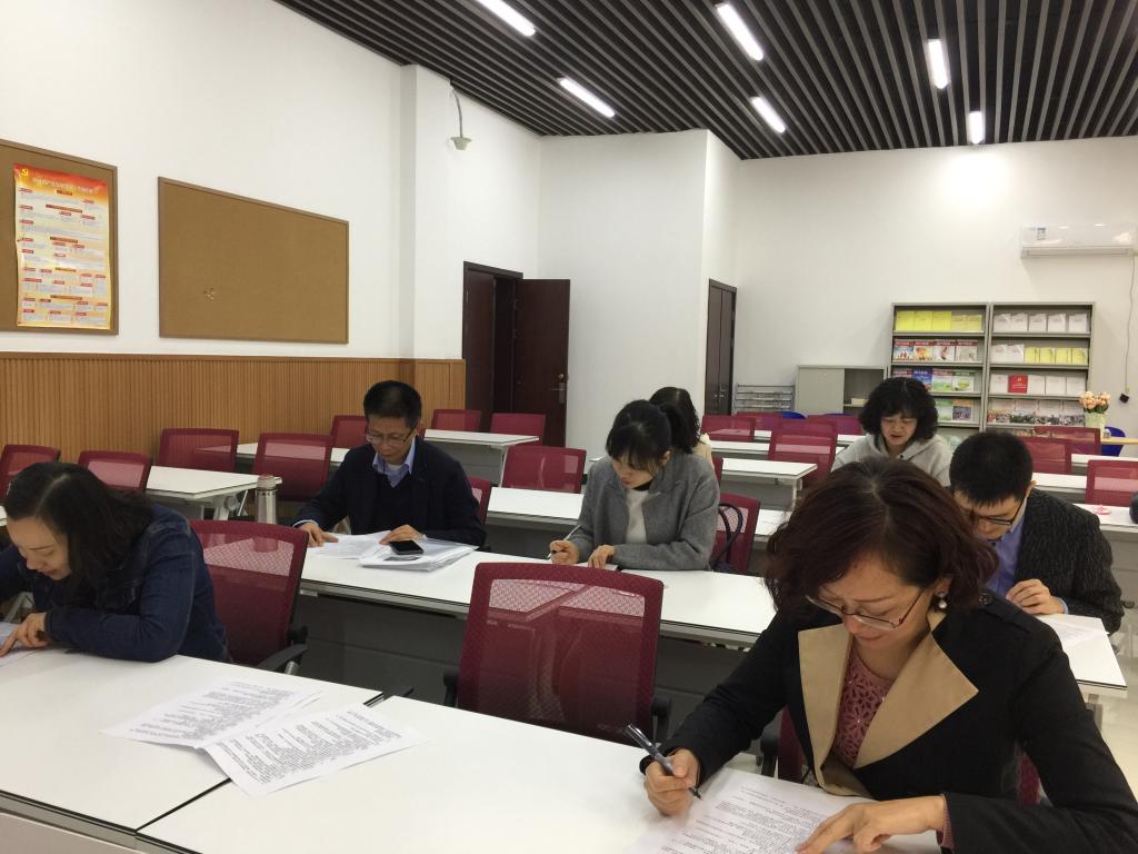 2017年11月8日,外国语学院大学英语创新课程组党支部在学院105党员活动室开展了主题党日活动,进行了十九大报告精神知识测试,集体观看了《大国崛起之海洋时代》,并就相关内容展开了讨论与交流。此次测试旨在更加深入学习十九大报告精神,同志们非常严肃认真地对待此次测试,不仅参加支部的“十九大报告精神” 集体学习,还认真自学了十九大报告。