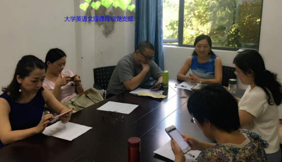 2017年9月14日,新学期伊始,大学英语文理学科课程组党支部在外国语学院202室召开了支部第一次党组织生活会,支部书记黎虹伶老师主持了此次组织生活会。此次组织生活议题共分为五项:1.专项巡视发现的主要问题及专项巡视提出的工作建议;2.作为先进党支部,了解并杜绝后进党支部整顿工作,及基层党支部自查对照表中涉及的问题;3.学习《重庆大学党费收缴、使用和管理规定》;4.再次学习《重庆大学党组织生活实施细则》;5.学习《习近平在省部级主要领导干部专题研讨班开班式上发表重要讲话》。