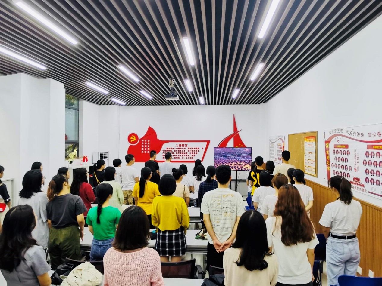 为庆祝中华人民共和国成立70周年,2019年10月1日上午,外国语学院党委组织师生党员在学院楼105党员活动室集体观看国庆庆典直播。聆听习近平总书记讲话、观看阅兵仪式,师生党员备受鼓舞,纷纷发表感言。