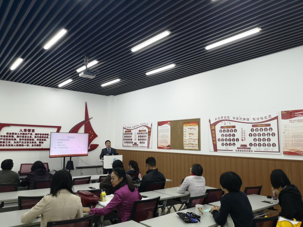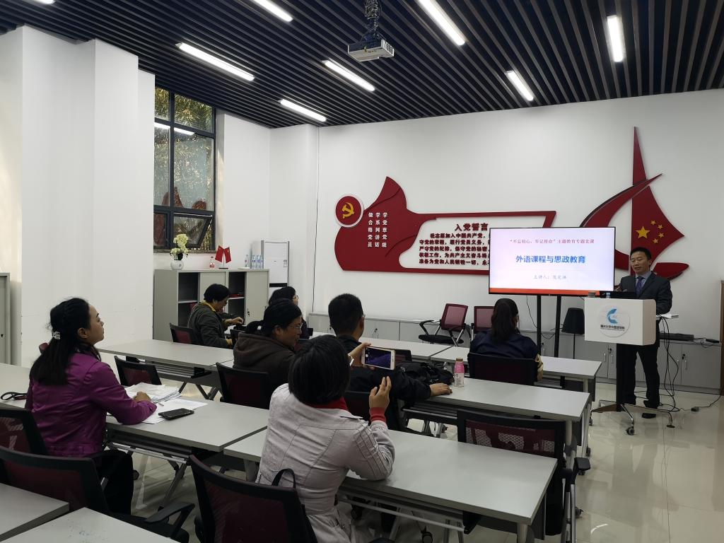 2019年10月31日,外国语学院外语专业教工支部在外语学院楼105室开展了组织生活,学院党委委员、副院长范定洪给支部全体成员讲了专题党课——“外语课程与思政教育”,会议由支委李良炎老师主持。