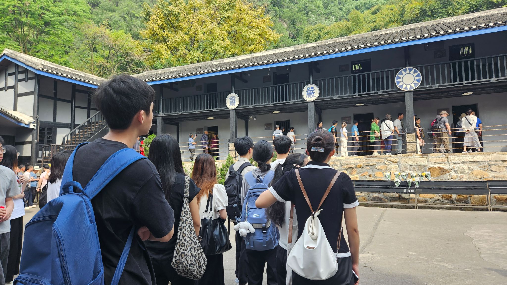 第二站,学员们来到了白公馆监狱旧址。随着讲解员对革命历史的阐释,一段段史诗渐次展开:平均年龄为33岁的烈士群体中,年仅8岁的“小萝卜头”宋振中在狱中承担情报传递工作;听闻新中国成立喜讯的革命者以被面为旗、草纸作星,制作五星红旗;《红岩》中华子良原型韩子栋以惊人毅力装疯蛰伏数载,最终成功越狱,为革命留存珍贵火种……此外,讲解员强调,值此世界反法西斯战争胜利80周年暨重庆谈判80周年之际,学员们理应以史为鉴,赓续先辈筚路蓝缕的精神遗产,将红色基因熔铸为奋进新征程的精神力量,踔厉奋发,笃行不怠。