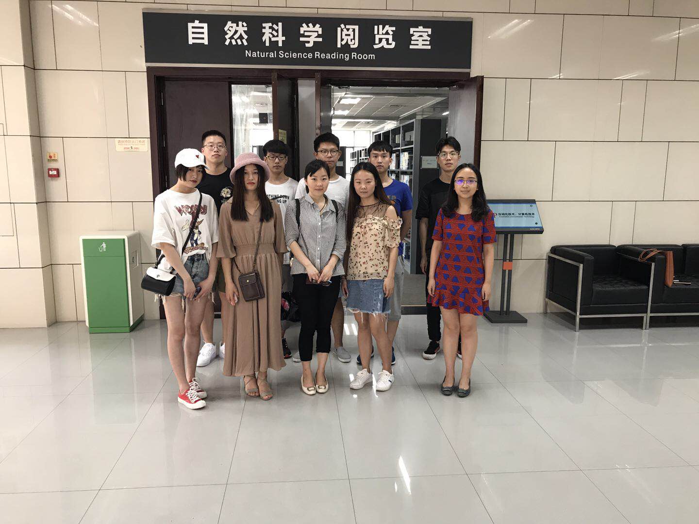 小组成员完成了各自的图书校对工作,全体组员回到三楼大厅合影留念,本次实践活动顺利结束。