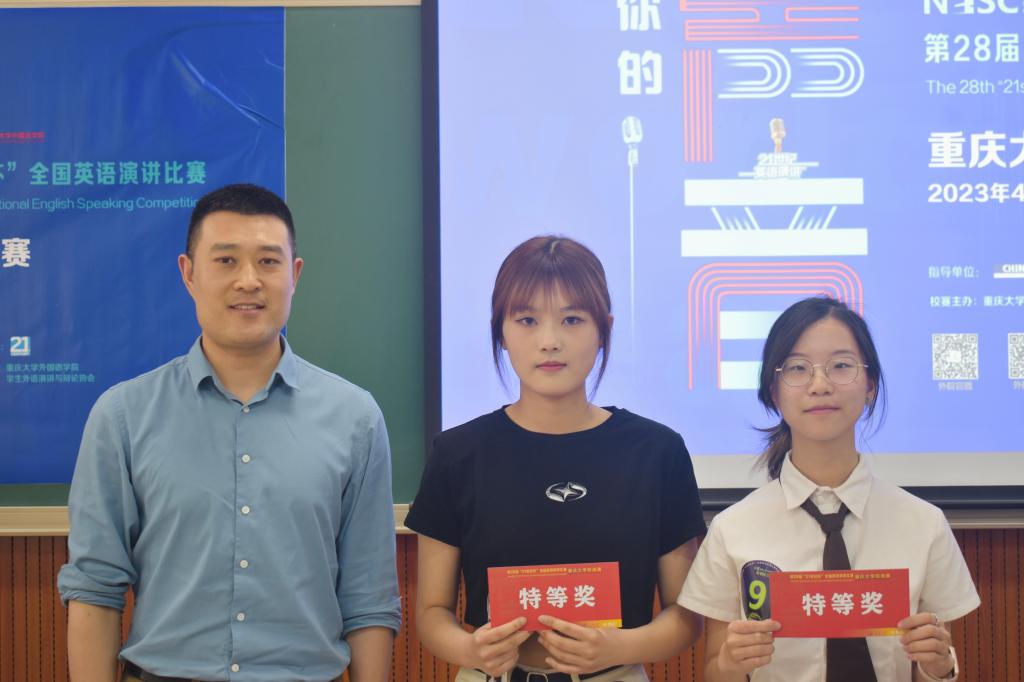 历经近三个小时的精彩角逐,校赛最终评选出特等奖2名、一等奖3名、二等奖7名和三等奖8名。弘深学院2022级计算机科学与技术专业陈嘉艺、外国语学院2020级英语专业杨宇瑄荣获特等奖。重庆大学-辛辛那提大学联合学院2022级电气工程及其自动化专业程诗越、物理学院2020级电子信息科学与技术专业伊丽达娜·马木提、本科生院2022级工程能源大类牟盈佳等3位同学获得一等奖。数学与统计学院2021级数统大类艾尔斯·杜尔洪、重庆大学-辛辛那提大学联合学院2022级机械设计制造及其自动化专业余丽、重庆大学-辛辛那提大学联合学院2022级电气工程及其自动化专业李宣烨、经济与工商管理学院2021级能源经济专业王艺涵、外国语学院2019级英语专业周佳蕾、本科生院2022级工程能源大类龚慧冲、美视电影学院2022级播音与主持艺术专业罗佩琪等7位同学获得二等奖。本科生院2022级法学与新闻大类孙悦迪、美视电影学院2022级播音主持专业许宇珩、重庆大学-辛辛那提大学联合学院2022级机械设计制造及其自动化专业周睿辰、美视电影学院2022级播音与主持艺术专业林丹婷、外国语学院2022级英语专业杜雨谋、公共管理学院2020级行政管理(组织与人力资源管理方向)专业杨洋、本科生院2022级电气信息大类缪颜、美视电影学院2022级播音与主持艺术专业陈俊颐等8位同学获得三等奖。