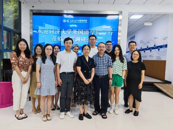7月21日,同济大学外国语学院党委副书记兼纪委书记、特殊人群语言研究带头人黄立鹤,党委副书记李疏贝、团委书记刘佳煊、本科生党支部书记李伟伟、团委副书记王雨辰一行5人来我院调研并座谈。语言认知及语言应用研究基地主任、原外国语学院院长彭静,党委副书记兼纪委书记魏世平,特聘教授、博士生导师康鑫及学生工作办公室相关老师参加交流座谈会,座谈会由魏世平主持。