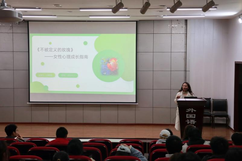 2025年3月7日晚19时30分,重庆大学外国语学院在二楼多功能厅成功举办了主题为“不被定义的玫瑰——女性心理成长指南”的女生节心理健康讲座。本次讲座特邀国家二级心理咨询师、西南大学应用心理硕士、助理研究员、中国心理学会注册心理师、重庆大学心理咨询师向青青担任主讲嘉宾。