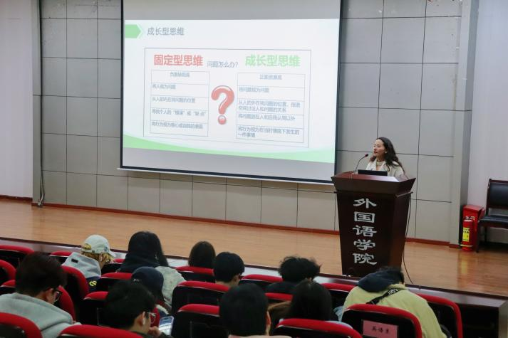 在讲座的第一部分“认知重构——建立心理防火墙”中,向老师深入剖析了成长型思维与固定型思维的本质差异。她阐释道,成长型思维有助于人们在面对情绪起伏、入学适应难题、社交压力等状况时,秉持积极应对的态度;而固定型思维则易使人陷入自我怀疑与焦虑的泥沼。通过对24项人格优势的细致分析,向老师激励同学们着力培养成长型思维,构建坚固的心理防线,从容应对生活中的各类挑战。
