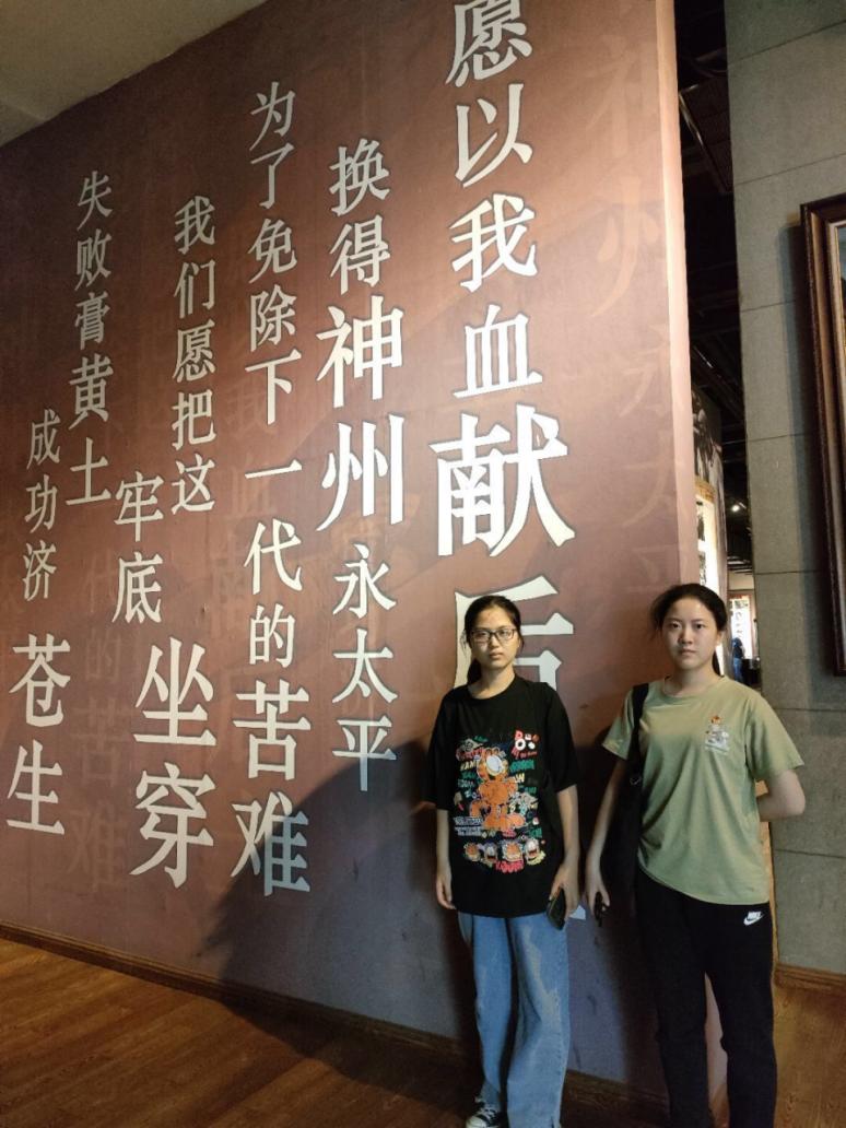 陈列馆展示的珍贵文物包括江姐原型人物在川东进行革命工作时使用过的皮箱、红岩烈士们生前在监狱里绣制的一面五星红旗、《挺进报》原件、杨虎城将军生前所穿军装、佩剑等等。通过陈列馆中的先烈文物展示、文字图片的描述,实践团成员完整地了解了小说《红岩》的创作历程,以及在渣滓洞、白公馆关押时期先烈们的艰苦生活与斗争,进一步走进了红岩时期,感悟到了红岩精神的力量。值得一提的是,在参观过程中,实践团成员们发现那些于“11·27大屠杀”牺牲的烈士们,有不少正值二十的大好年华,他们在生前为了革命、为了解放艰苦斗争,入狱后也依旧初心不改,坚持反蒋和地下革命的同时,不忘身为青年的本职,在监狱如此恶劣的环境下仍然坚持写作、苦学知识,怀揣着对于革命的必胜之心与学习的高度热情。这份坚忍不拔的革命精神,使同样身为青年学生的实践团成员大受震撼,更是为当代青年学子树立了优秀的榜样,启示我们在新时代也要学习这份刻苦学习、不懈奋斗的精神,为社会主义现代化建设与革命贡献出属于我们青年的力量。