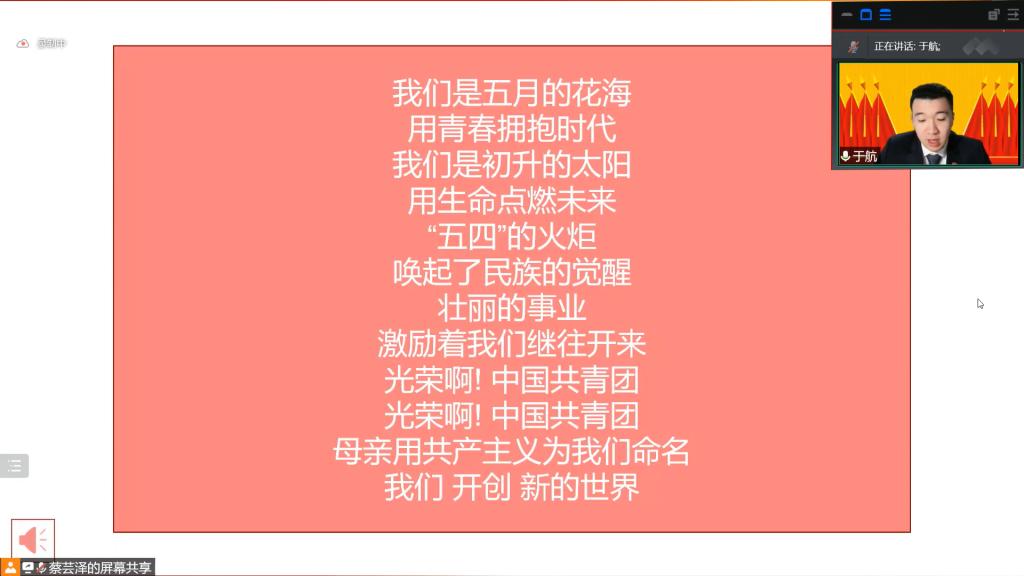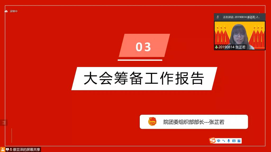 会议伊始,主持人于航同志带领与会人员齐唱共青团团歌。在悠扬的歌声中会议进入第二项,院团委书记汪俣婧老师宣读上级团委文件《关于开展重庆大学2021年度共青团评议工作的通知》。根据通知精神和要求,张芷若同志代表院团委向会议与会代表做大会筹备报告。在大会筹备报告中,张芷若同志向与会团员代表简要汇报了本次大会的筹备工作,同时向各与会代表和工作人员表示感谢,并预祝本次会议取得成功。