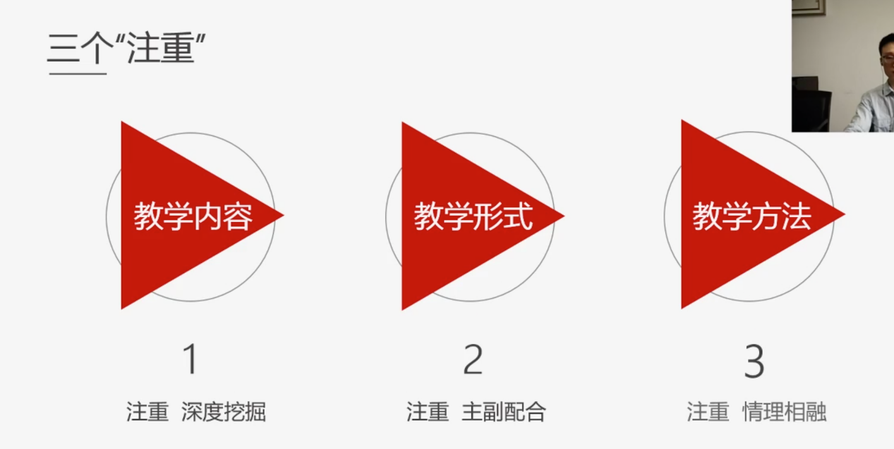 徐琦老师提出,关于如何建设课程思政教育,首先是要寻找切入点,接着,徐琦老师分别介绍了课堂思政建设设置中的三个“注重”点以及注重方式,分享了日语听力课堂的具体案例,就如何将思政建设融入到听力课程做了详细展示。