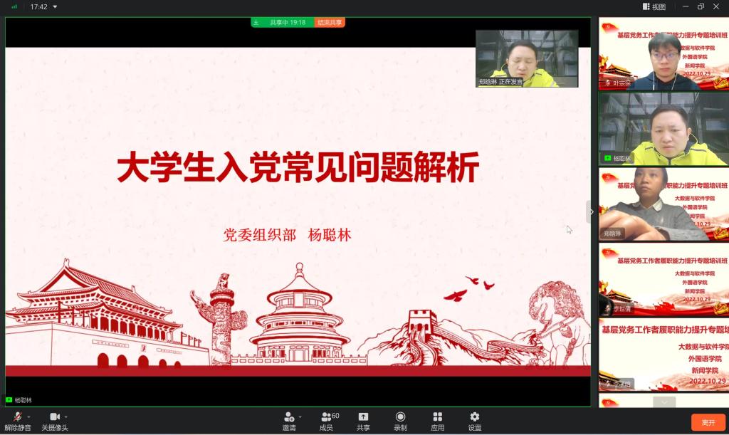 外国语学院 大数据与软件学院 新闻学院三院联合开展基层党务工作者履职能力提升专题培训第二讲