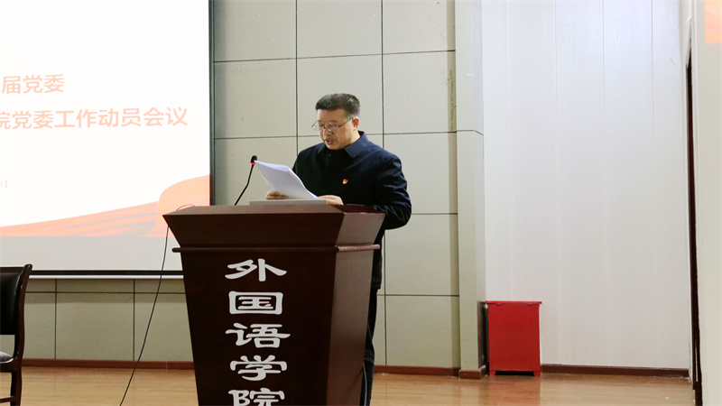 2023年2月23日,学校党委第二巡视组巡视外国语学院党委工作动员会在外国语学院二楼多功能厅召开。校党委副书记、纪委书记、监察专员、巡视工作领导小组副组长陶举虎同志出席会议并讲话。外国语学院院长莫启扬主持会议,党委书记欧玲作表态发言。