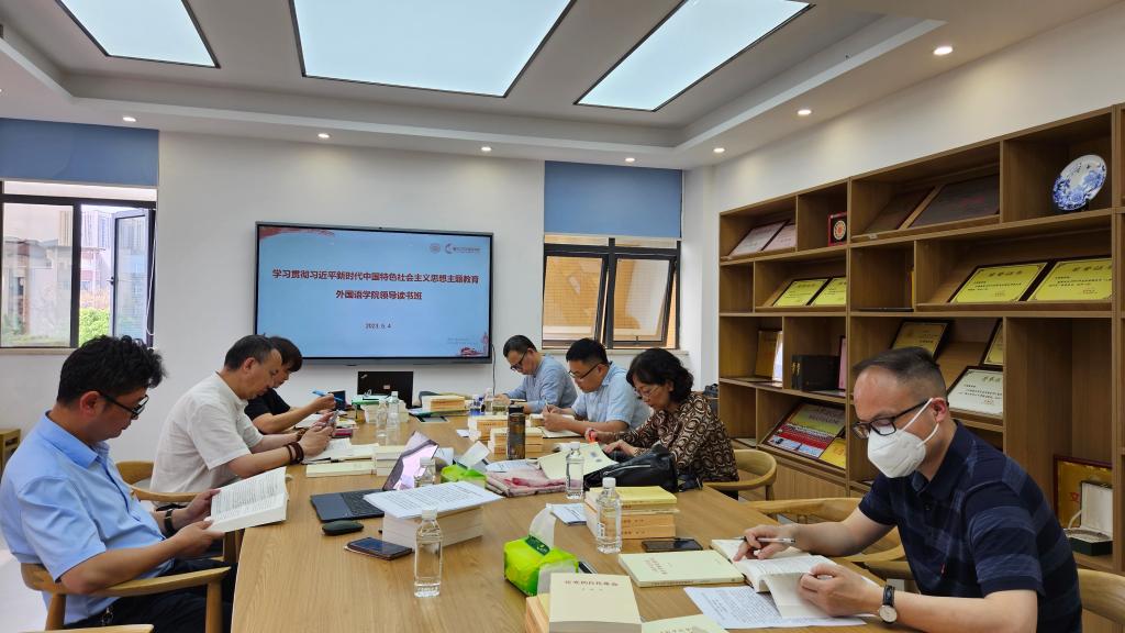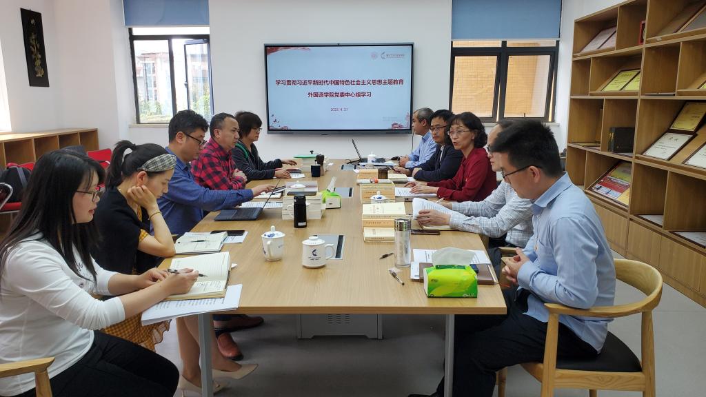为深入学习贯彻习近平新时代中国特色社会主义思想,持续推进习近平新时代中国特色社会主义思想入耳入脑入心,贯彻落实党的二十大精神,扎实推进新时代党的建设新的伟大工程,外国语学院党委按照党中央的部署和市委、学校党委有关工作要求,认真落实主题教育理论学习任务,从4月25日开始开展了为期7天的领导读书班学习研讨,并开展了党委中心组专题学习。