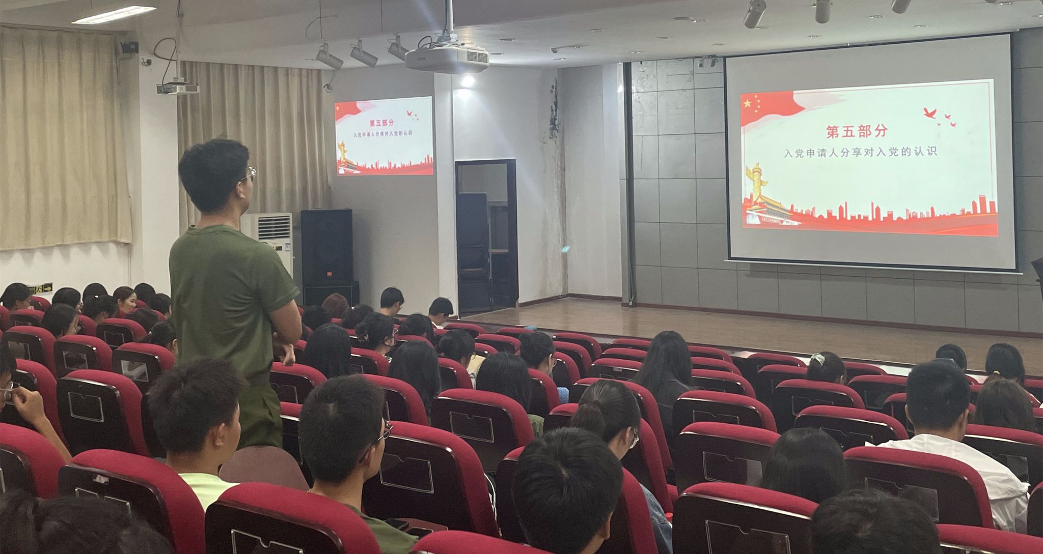 在入党申请人分享入党动机和对党的认识的环节,各位新生同学踊跃发言。本科英语专业程庶轩同学讲述了母亲作为教师党员对他向党组织靠拢的影响;日语专业郑泉同学分享了文科学习过程中对党的认识和身边党员同志无私奉献对其潜移默化的影响;德语专业朱奕安同学则谈到,党员不仅是责任,更是一种力量的凝聚,是疫情期间“党有号召,我有行动”的奉献与担当,也是集体中先锋模范的缩影。学硕苟可欣同学则分享了自己深受家乡革命精神影响,从进入大学以来,对党的理解认识不断加深的过程和在志愿服务活动中深受党员奉献精神感动,在研究生入学后再次提交入党申请书,热切表达了希望能够成为党组织一份子的愿望。