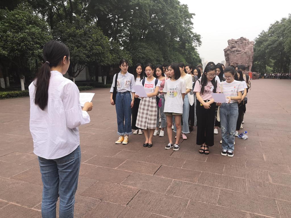 2019年5月16日,重庆大学外国语学院第38期入党积极分子培训班的学员们,参观了红岩魂广场,悼念为新中国成立浴血奋斗的革命先烈,开展了以红色革命教育为主题的现场教学活动。