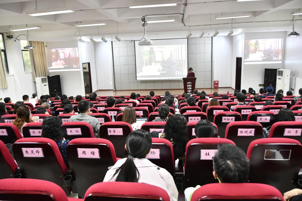 为深入开展党史学习教育,做到学史明理、学史增信、学史崇德、学史力行,2021年6月10日,外国语学院党委书记欧玲作了“不忘立德树人初心 牢记为党育人为国育才使命”的“四史”学习教育专题报告。学院领导班子成员及全体教职工参加了此次会议。会议由党委副书记魏世平主持。