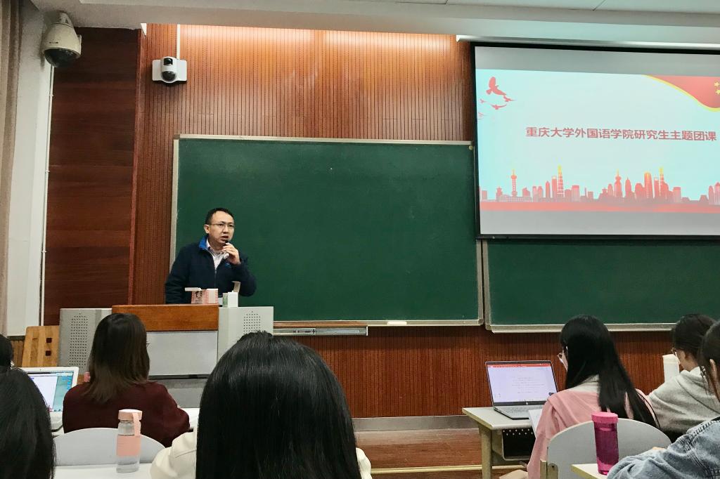 秋桂飘香,团课学习不能忘。为进一步激励研究生团员继承和弘扬共产主义青年团的优良精神,增强青年团员的社会责任感和历史使命感,拓宽青年团员的知识眼界及提高其综合素质,10月21日下午外国语学院研究生分团委在虎溪校区第一教学楼D1142开展了研究生主题团课学习活动。学院党委副书记魏世平、正科级组织员刘培、研究生辅导员覃梦秋老师出席了本次活动,学院40余名研究生参与了本次学习。