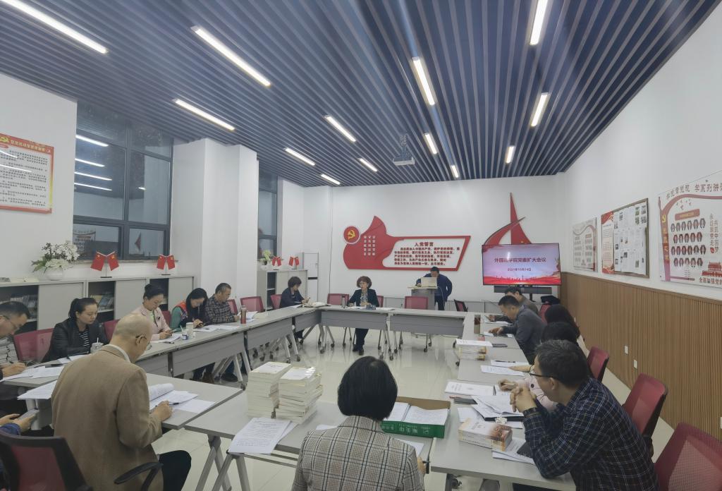 2021年10月14日,外国语学院在学院105党员活动室召开了党委扩大会议,研究部署落实巡视反馈意见整改任务、深入推进党史学习教育等工作。会议由学院党委书记欧玲主持,学院党委委员,教工支部书记、支委委员,学生支部书记参加了会议。