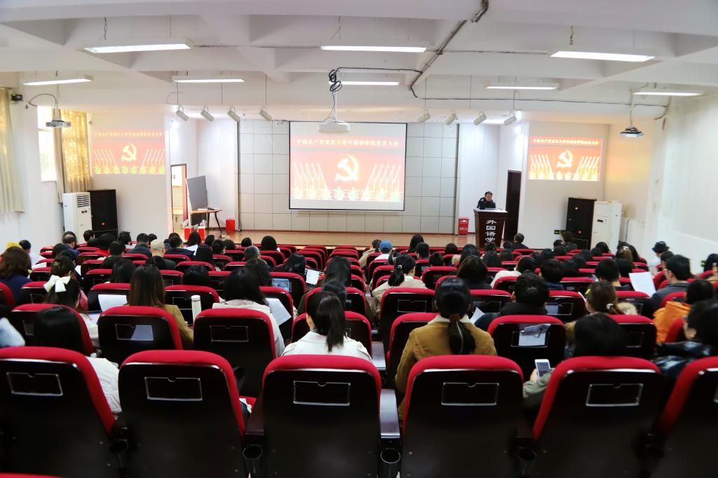 在得到学校党委关于学院党代表候选人预备人选名单的批复后,2021年12月3日,外国语学院党委在虎溪校区外国语学院二楼多功能厅召开了党员大会,选举参加重庆大学第十四次党代会的外国语学院代表。此次党员大会由学院党委副书记魏世平主持,全院150名师生党员参加了会议。